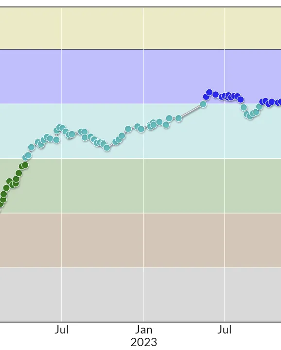 水色になってから1年ちょい(2022/04 ~ 2023/05)で青になりました.