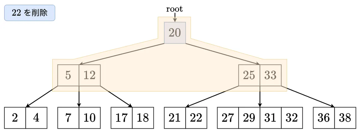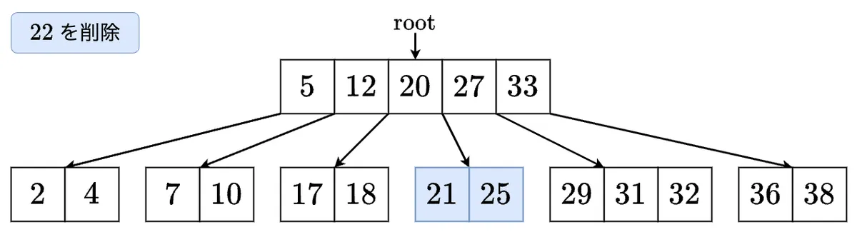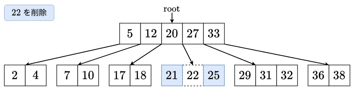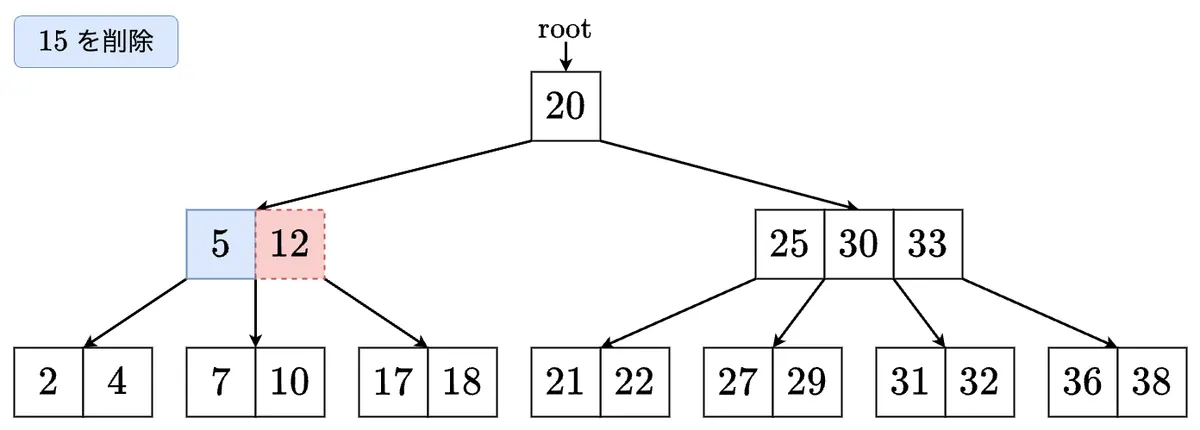 - 削除した最小値を左の子に移します.これで左の子のサイズが 以上になりました! の左の子に移動します.
