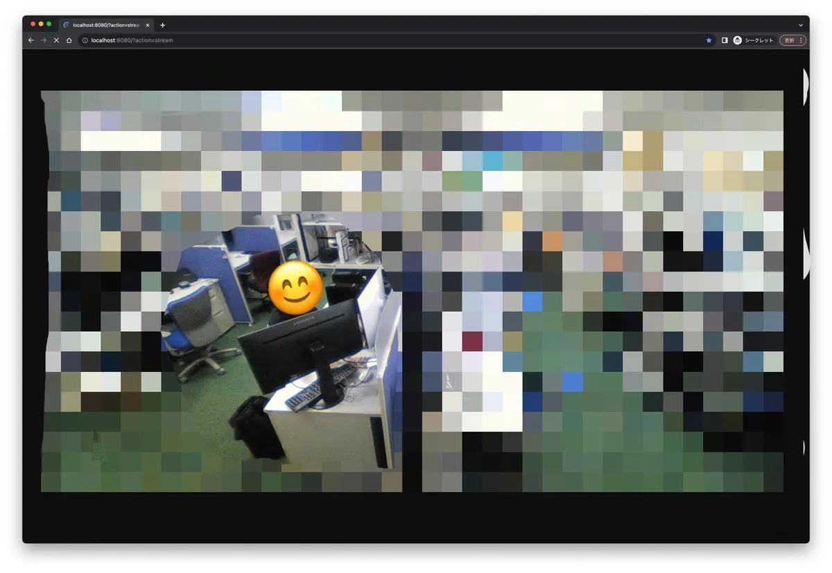 ただ、細かいことを言うとブラウザ上で-webkit-filter: blur(3px);の記述を削除してしまえば生の映像が見れたり、/?action=streamや/stream.htmlで生の映像が見れたりしてしまうので、絶対に生の映像を見られたくない場合は映像データ自体にぼかしを入れるようにしてください。