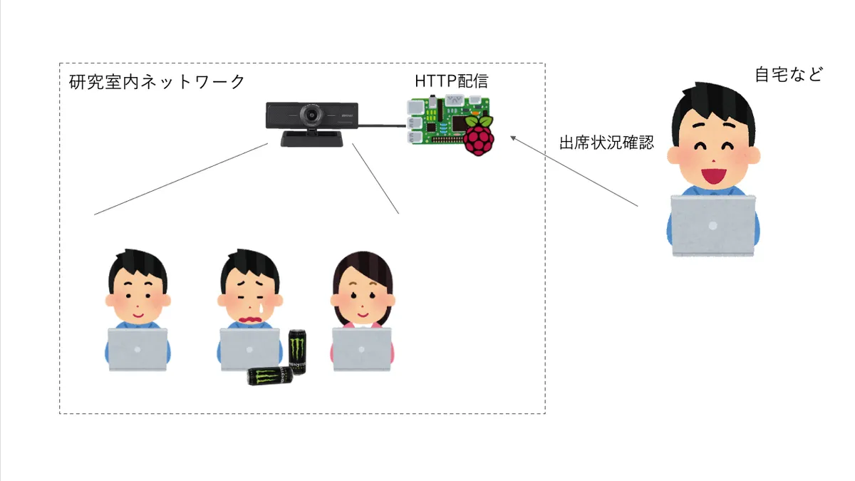 みなさんは、研究室に行ったら誰もいなかったなんて経験、ありませんか?僕はよくあります。今回はそんな、「研究室にいったら誰もいなくてぼっちになってしまう」問題を解決すべく、研究室にラズパイを用いた生配信カメラを設置して研究室の様子を確認することでぼっちを回避しようというお話です。実際にやってみると、ラズパイとUSBカメラさえあれば比較的簡単に実現できることが分かりました。