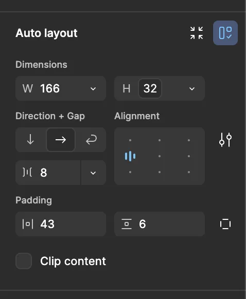 Frame内のUIの並び方を明示することが出来ます.縦方向,横方向,折り返しの3パターンがあります.横方向はflexbox, 折り返しはflex-wrapのような振る舞いにすることが出来ます.