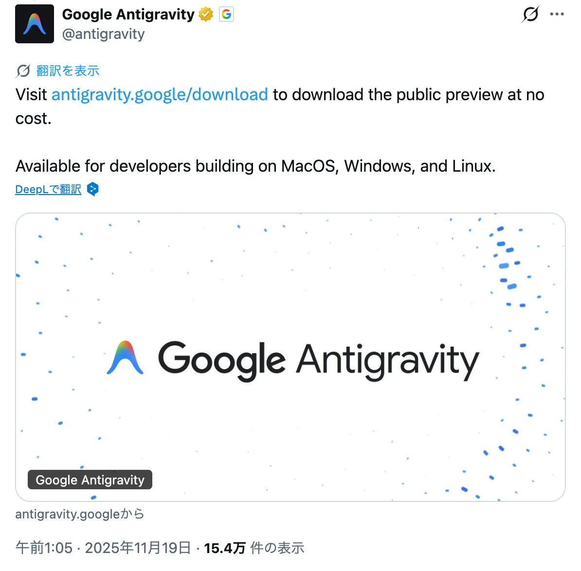 とりあえずAntigravityをインストールしましょう.↓のリンクからいけます.