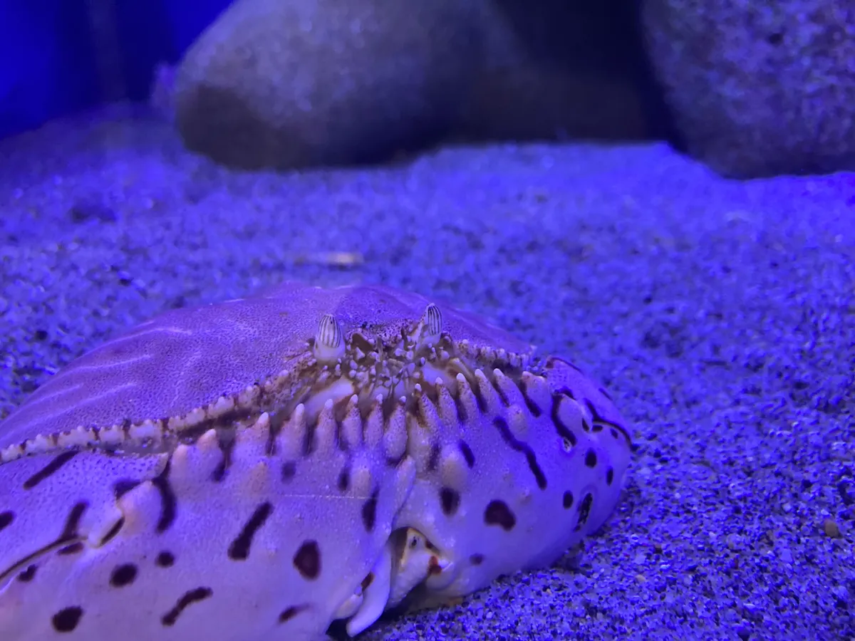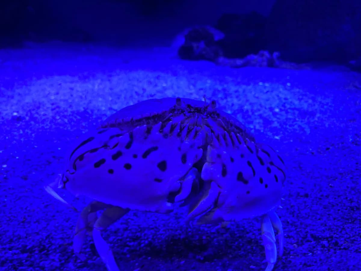 水槽の裏側には歩いているカニの腹部を下から見上げることができる超レアスポットがあります。
