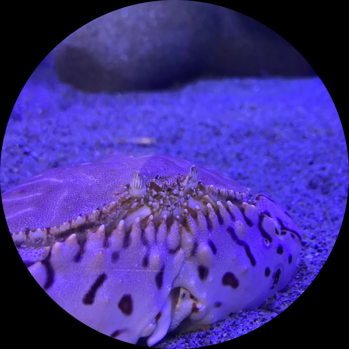 「トラフ」とはトラ模様のこと。まんまるなフォルムから昔はマンジュウガニとも呼ばれていた十脚目短尾下目カラッパ科カラッパ属ですが、日本で確認されているだけでも10種類以上います。(可食ですが、食用ではありません。)
