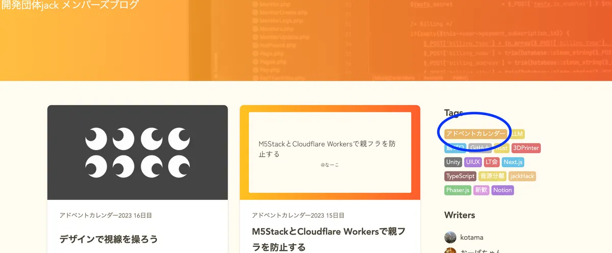 jackのブログサイトはタグ機能があって、タグで記事を絞り込んで表示することができるという便利な機能をつけてくれています。