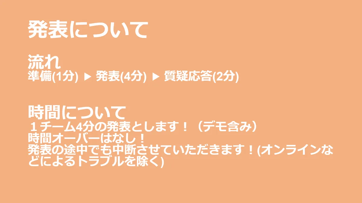 このテーマにそってアイデア出し、開発を進めていきます。