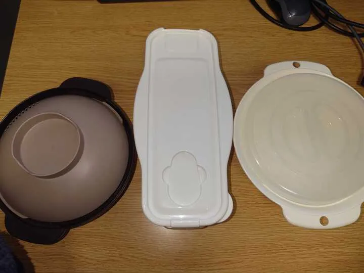 食事は人間が生きていく上でとても大事ですが、自炊はめんどくさいし、外食は高いです🥲 そこで活躍するのがレンチン調理器具! 🎉 レンチン調理器具とは器具に具材を入れてレンチンするだけで料理が作れる神アイテムです。 100円ショップやAmazonなどで買えます。 僕はフライパンを握った回数よりもレンチン調理器具をレンジに入れた回数の方が多いです。 僕が持っているレンチン調理器具はこんな感じです。