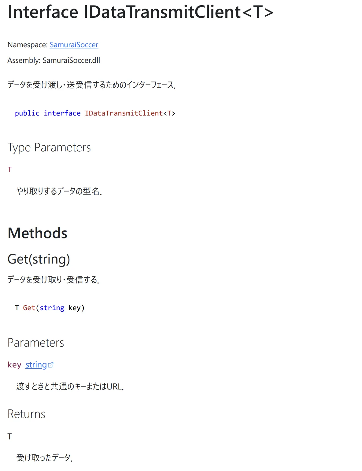 ここで書いたサンプルコードは私が参加している侍蹴球のコードから取ってきたものなのだけれど、これをDocFXでドキュメントにするとこんな感じになる。