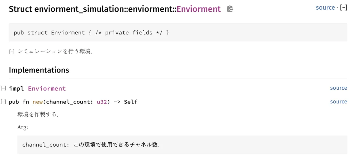 }これも構造体や関数の上にコメントを書く。Markdownで書けるから自由に書いて~という感じ。私の書き方は他のやつに影響されててほめられたものではないけど。